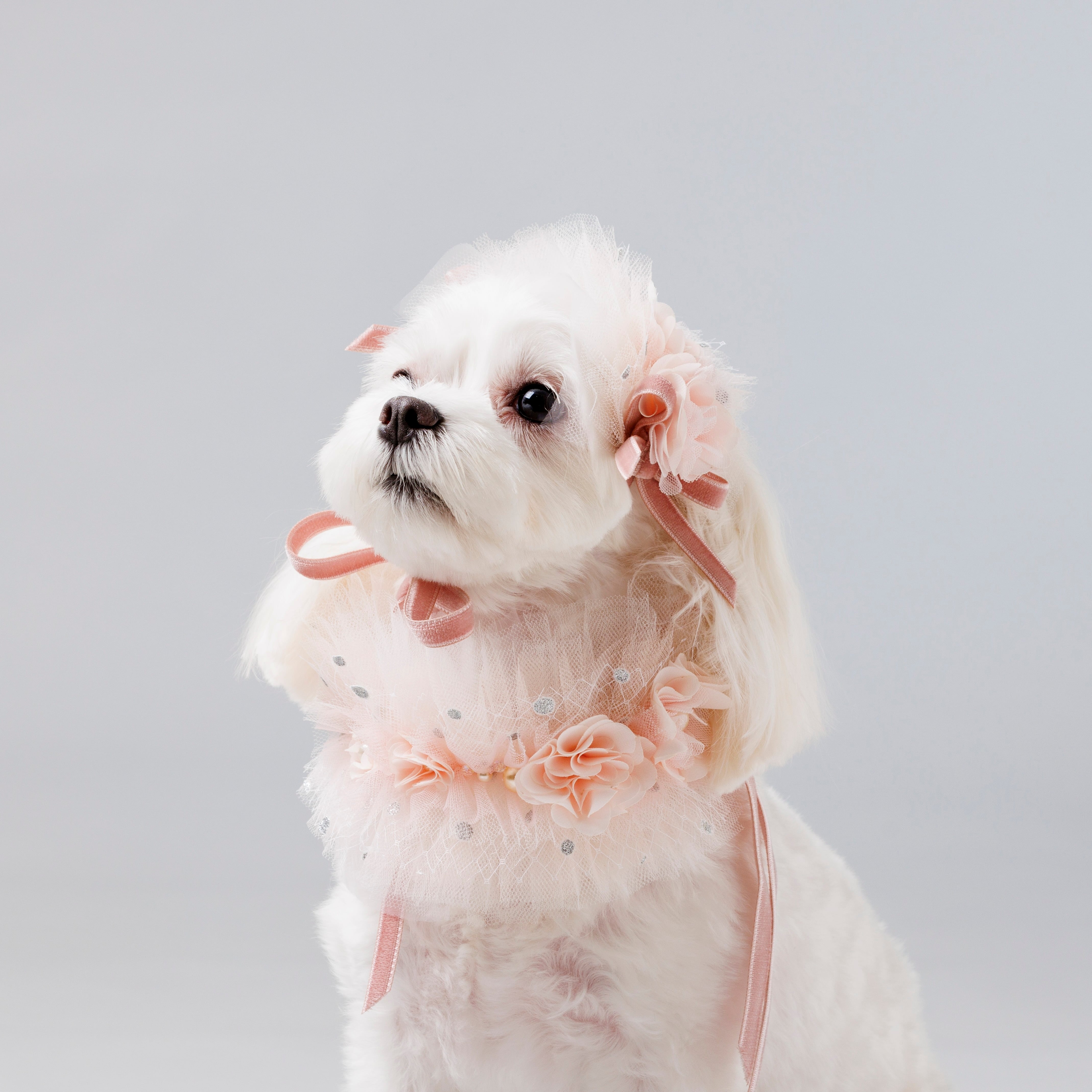 同素材で構成された”ふわふわチュールヘッドドレス”もセットで合わせるのも